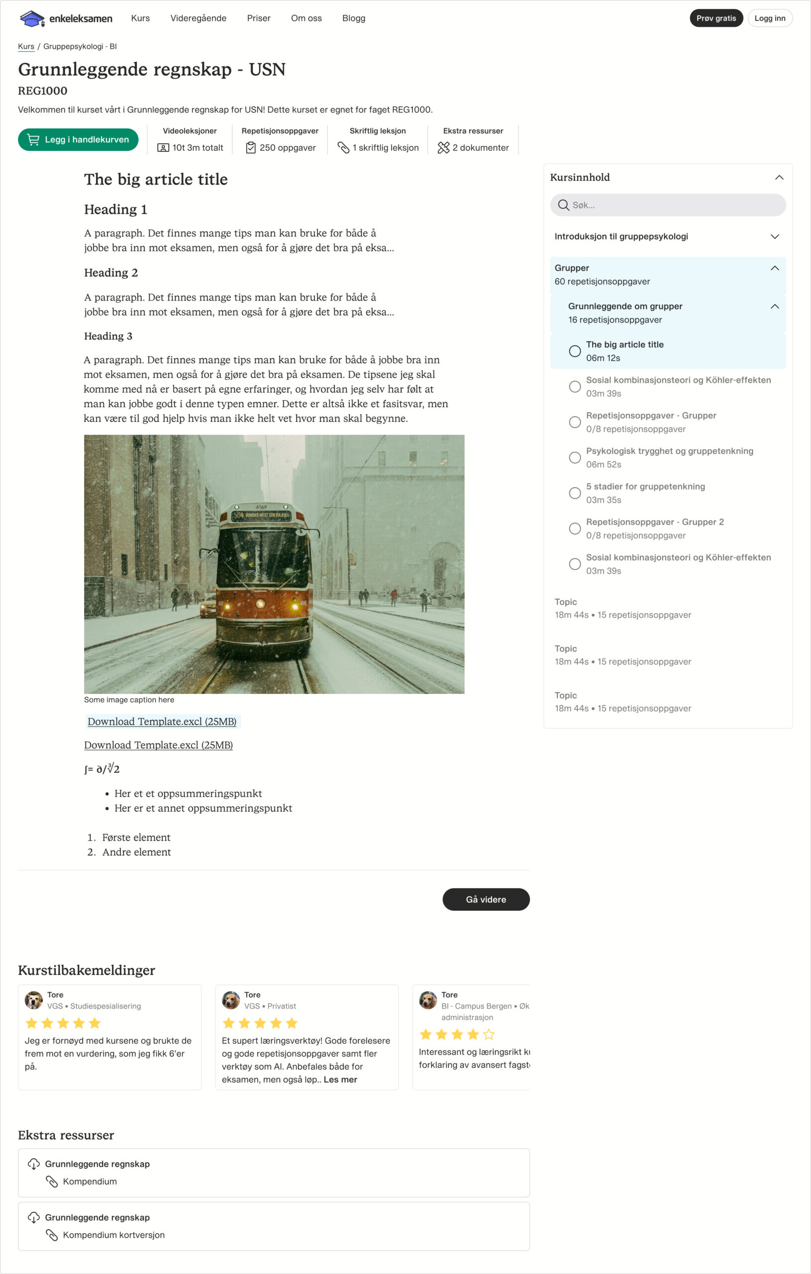 Fagbloggen til Enkeleksamen har som hensikt å hente inn brukere som er nysgjerrige på et tema og sende de videre inn til kjøpsprosessen for kurs. I dette prosjektet hadde jeg derfor som fokus å fornye bloggen slik at den også tydelig viste relevante kurs og lett kan lede brukeren inn dit.